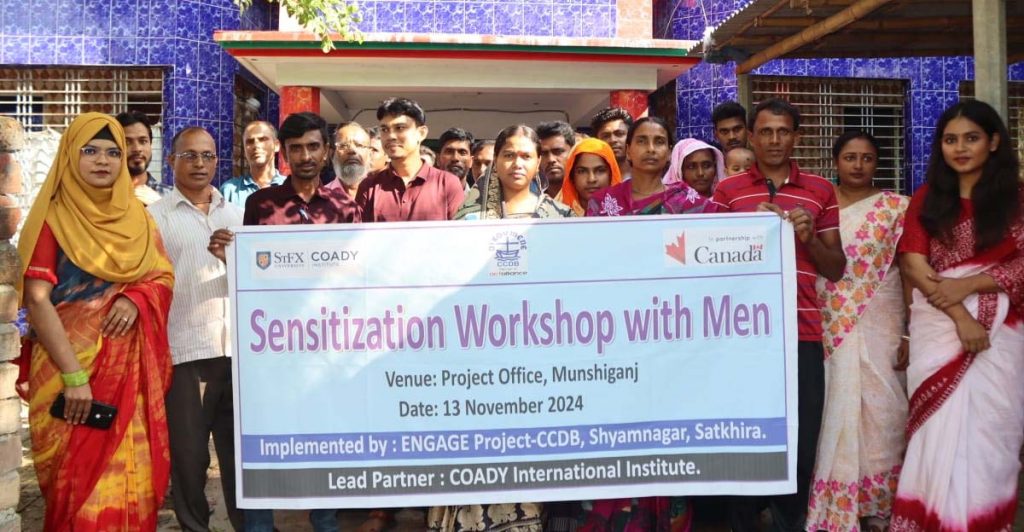 এ লক্ষ্যে, ১৩ই নভেম্বর সকাল ৯টায় শ্যামনগর উপজেলার মুন্সিগঞ্জে সিসিডিবি-এনগেজ প্রকল্প অফিসে প্রকল্পের নারী সদস্যদের স্বামীদের জন্য এক দিনের পুরুষ সংবেদনশীল কর্মশালা অনুষ্ঠিত হয়।